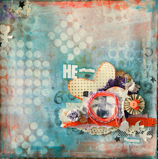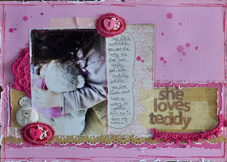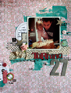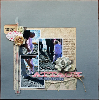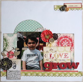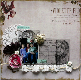 My style tends to include elements of shabby chic, vintage, fussy cutting and a touch of grunge. I love to include texture, dimension and different techniques. My inspiration comes from my children, blog surfing, magazines, product and other scrappers that I admire.